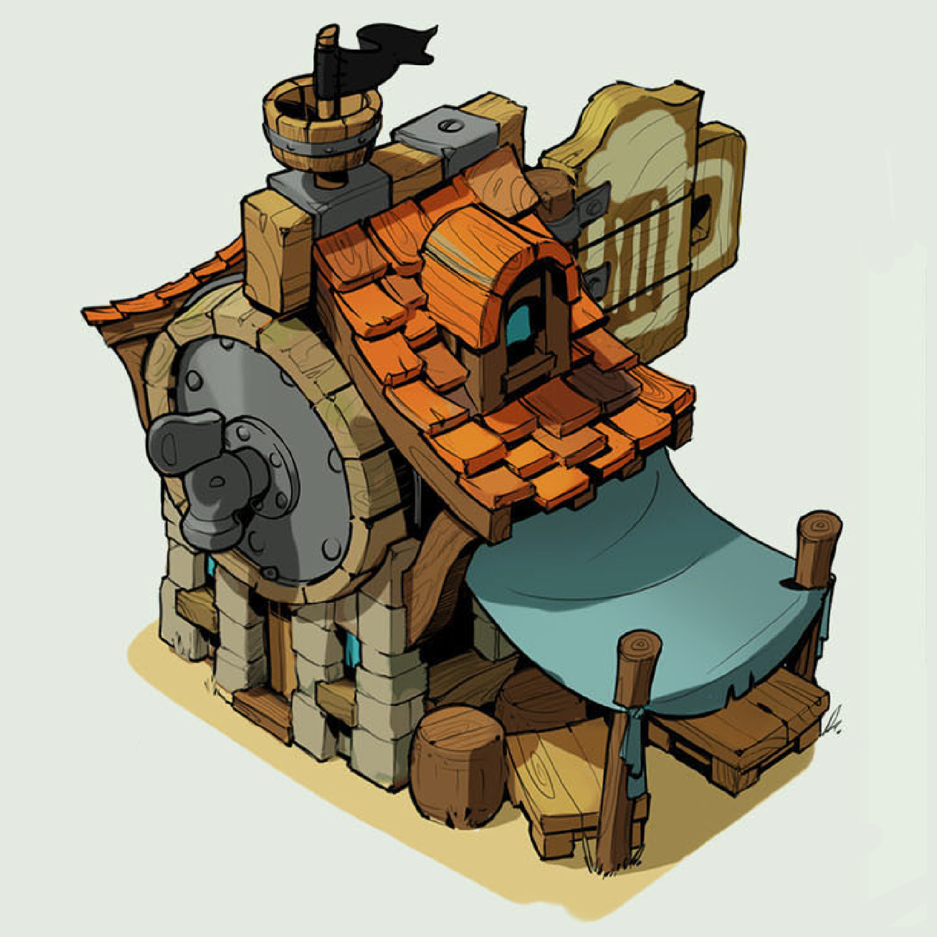 This was an assignment for my Projects and Portfolio course, in which we spent a month creating a high-detail model of based on a reference image of our choice, with the selection being supplied by the professor. I selected this fantasy tavern featuring a giant barrel keg making up the majority of the structure, since I wanted a bit of a challenge.